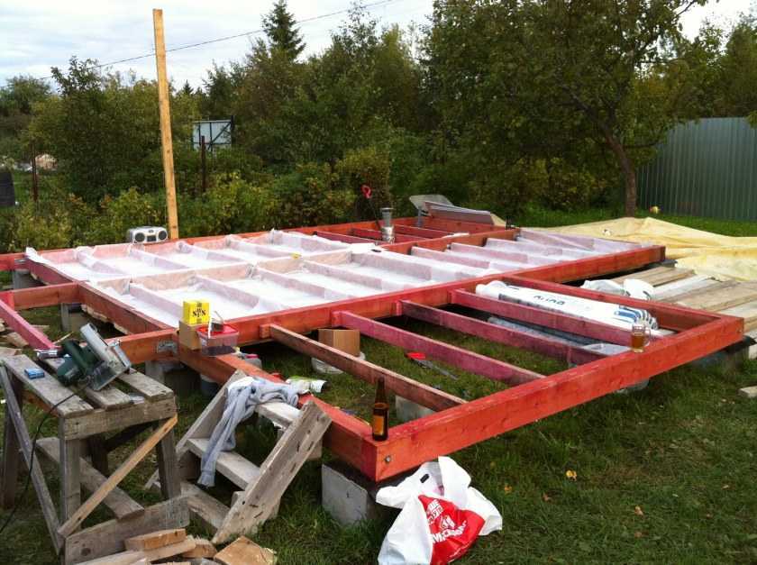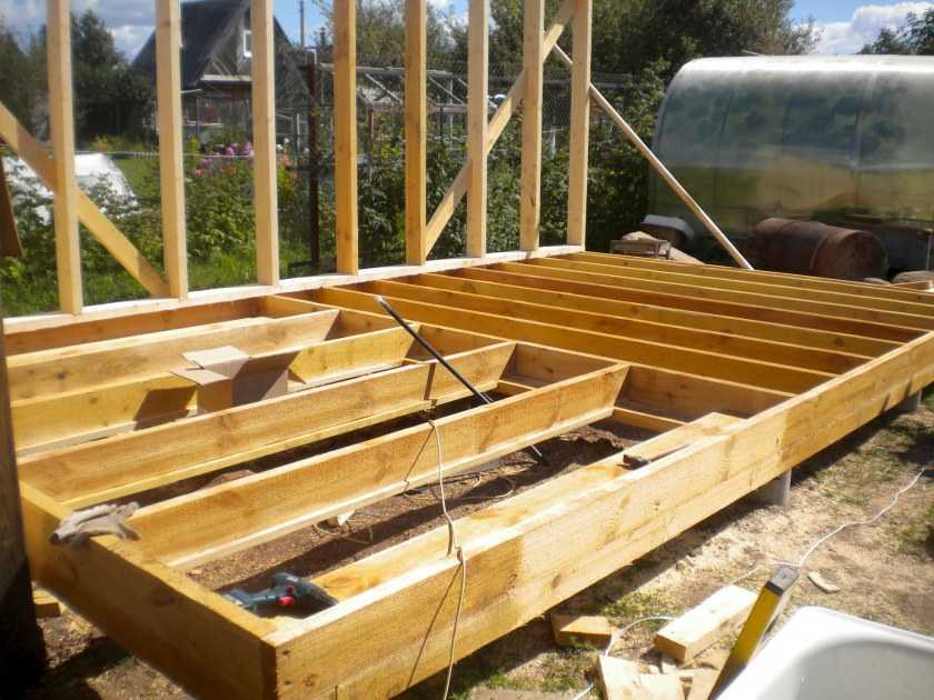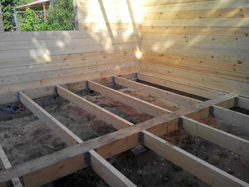Делаем пол. Для его лучше всего подойдёт брус с сечением в 0,15 метра. Строим крышу