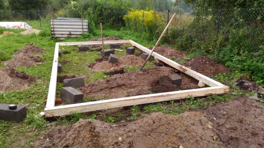 Каркас можно изготовить из досок, кусков фанерных листов или ОСП. Если грунт на территории строительства глинистый, то опалубку делать не нужно.