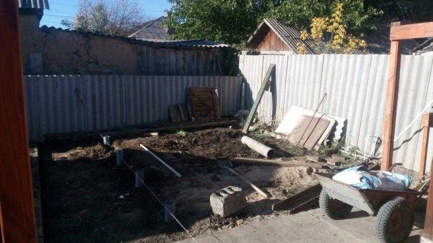 - Основные стойки укрепляем, заливая их бетоном;