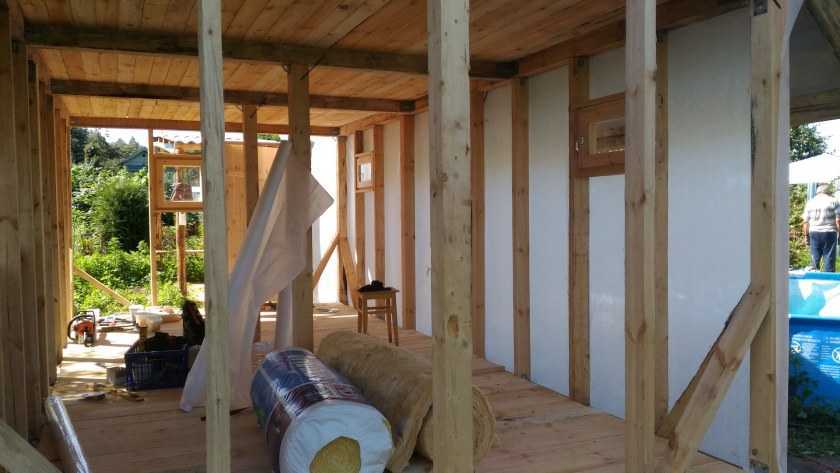 Следующий этап включает в себя утепление всех элементов. Лучше всего для этих целей подойдет минеральная вата. Выбирая утеплитель, читайте составы и помните, что не все варианты экологичны и подходят для строения с возможностью нагрева до высоких температур.