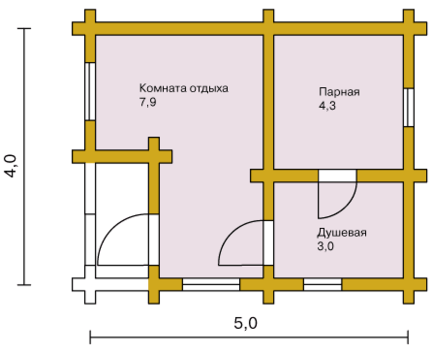 Минимальный размер бани для комфортного пребывания нескольких человек составляет 3х4 м