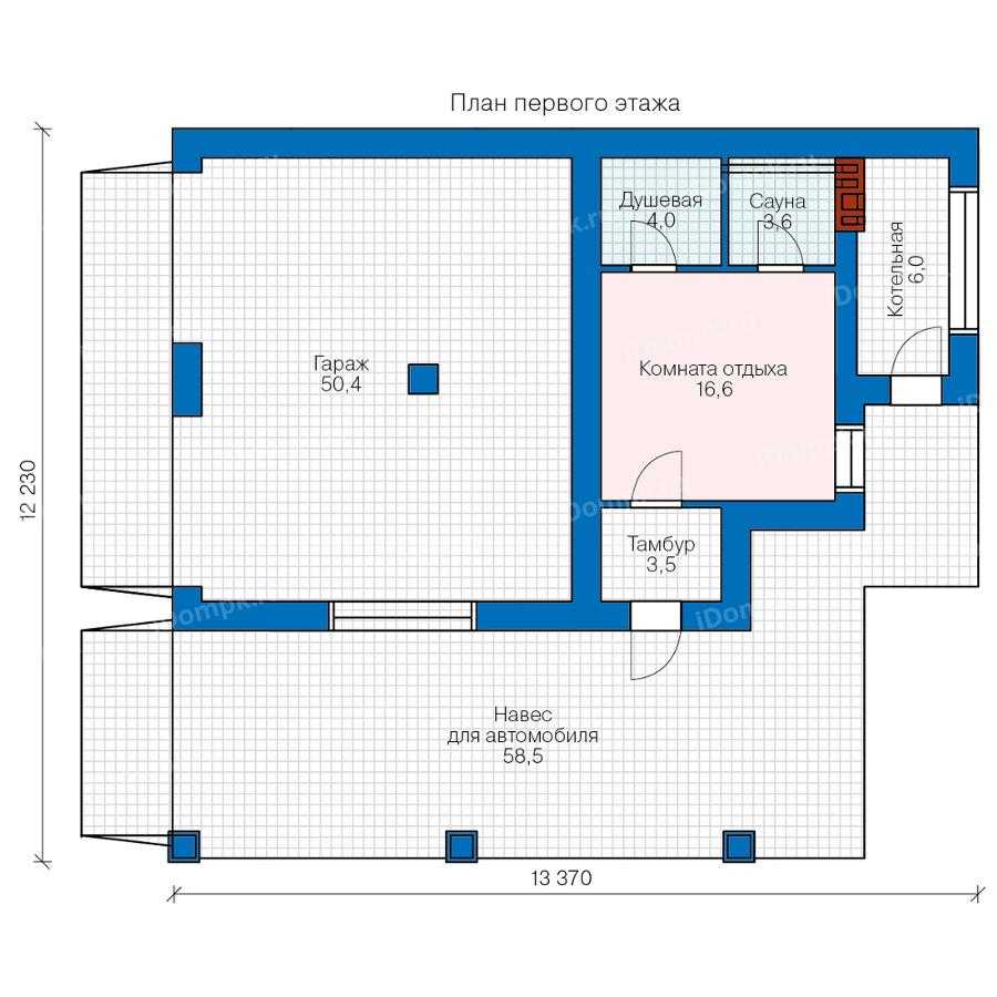 - рядом с сауной предусмотрена душевая и комната отдыха (16,6 м2), где легко можно будет поставить диван, пару кресел и столик;