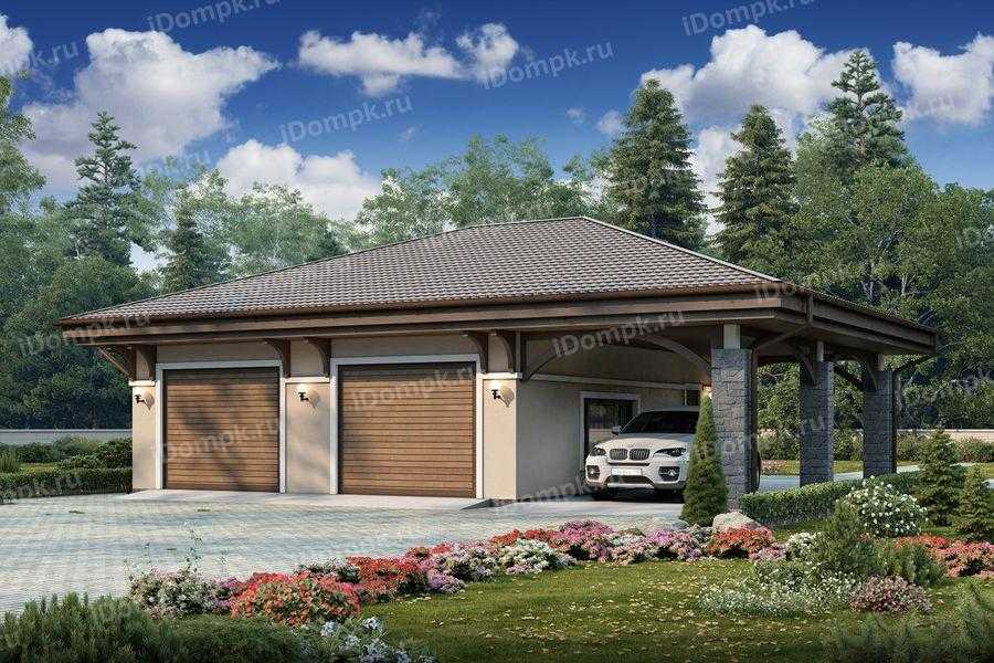№1. Проект гаража на две машины с баней и навесом