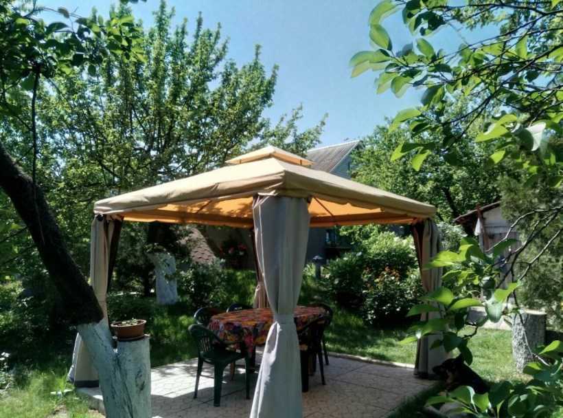 - Летняя беседка. Это помещение с крышей, открытое со всех сторон. Она защитит от солнечных лучей и дождя.