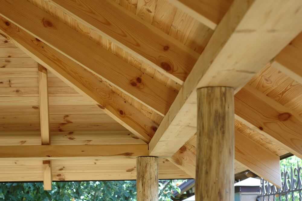 Для возведения беседки из дерева могут использоваться оцилиндрованные и неоцилиндрованные бревна, строганый и клееный брус, массивная доска и тонкие деревянные рейки. Древесина должна быть хорошо высушенной, в противном случае при эксплуатации могут пойти трещины.