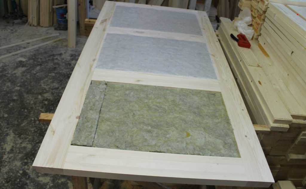Существуют щитовые двери сплошного заполнения рейками или брусками. Лицевую сторону полотен зашивают листовыми материалами. Изделия имеют повышенную массу и требуют изготовления рамы усиленной конструкции.
