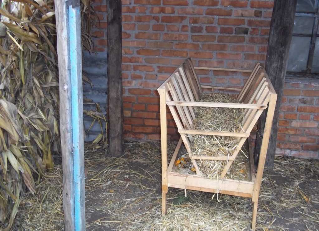 Создание правильной кормушки – мероприятие необходимое, поскольку ее использование поможет излишне не расходовать корма и будет комфортным в эксплуатации. Так, для влажного корма можно подготовить специальные пластиковые кормушки, для зернового — ведра, а для сена делают решетчатые ясли из дерева или труб с открытым прямоугольным верхом, но сужающиеся книзу.