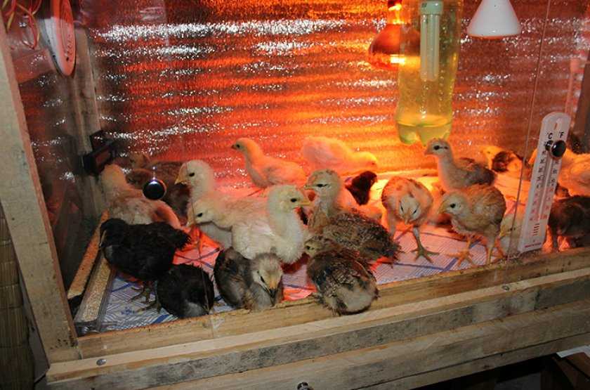 Зачастую птицеводы используют для обогрева новорождённых цыплят брудеры с тёплым полом — это гарантирует равномерное прогревание жилища птенцов, однако стоимость такого обогревателя довольно высока. Существует вариант не менее эффективный, но более экономичный и доступный.