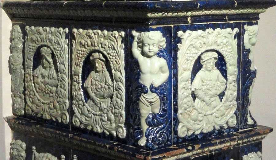 Представляем вашему вниманию изящную керамическую печь из Инсбрукского музея прикладного искусства. Это кобальтовая изразцовая печь в стиле ренессанс с белыми фаянсовыми барельефами.