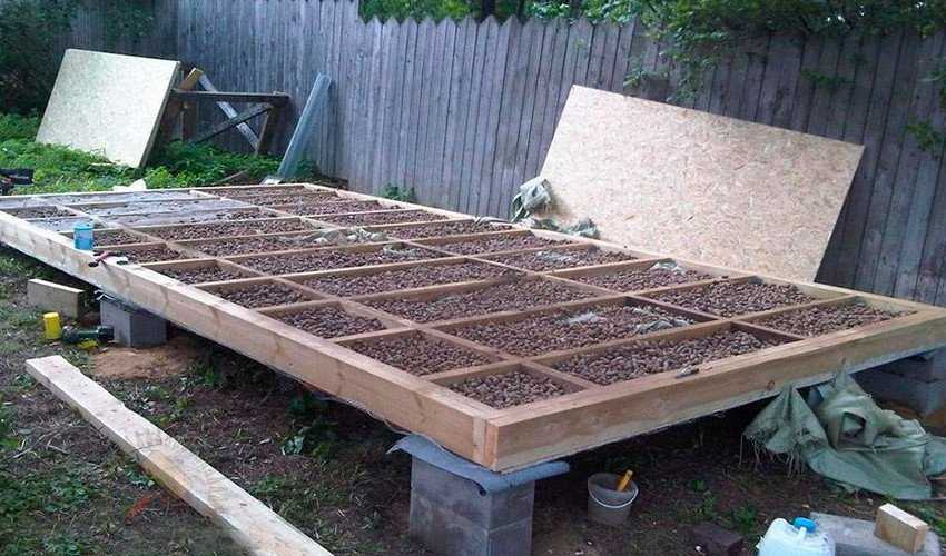 - Промежутки, образовавшиеся между лагами и рубероидом, засыпьте крупным керамзитом.