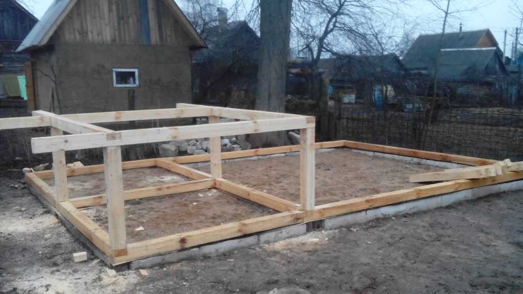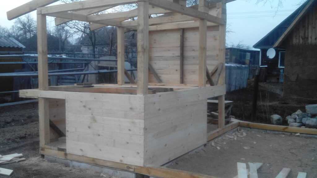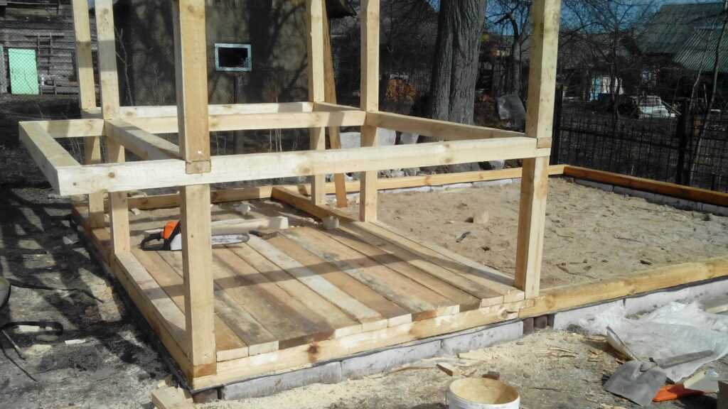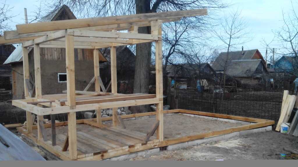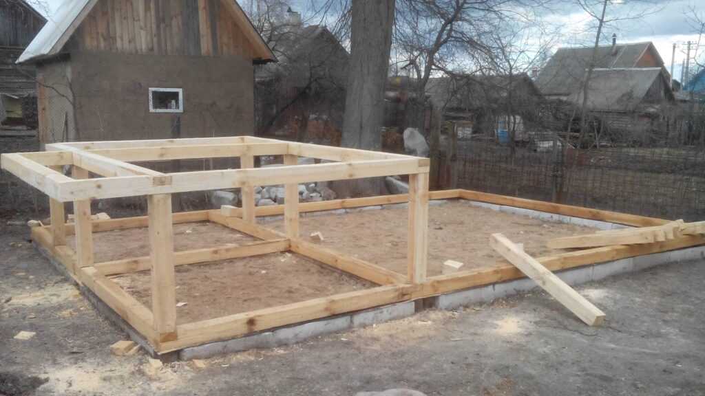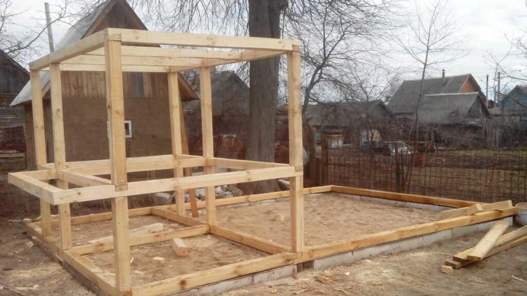 - Сначала возводим каркас, используя балки из дерева, толщиной, как уже говорилось, не менее 5 сантиметров.