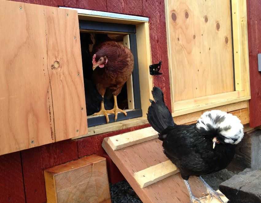 Двери курятника открываются как в сказке «Красная шапочка» — дерни за верёвочку и дверь откроется.