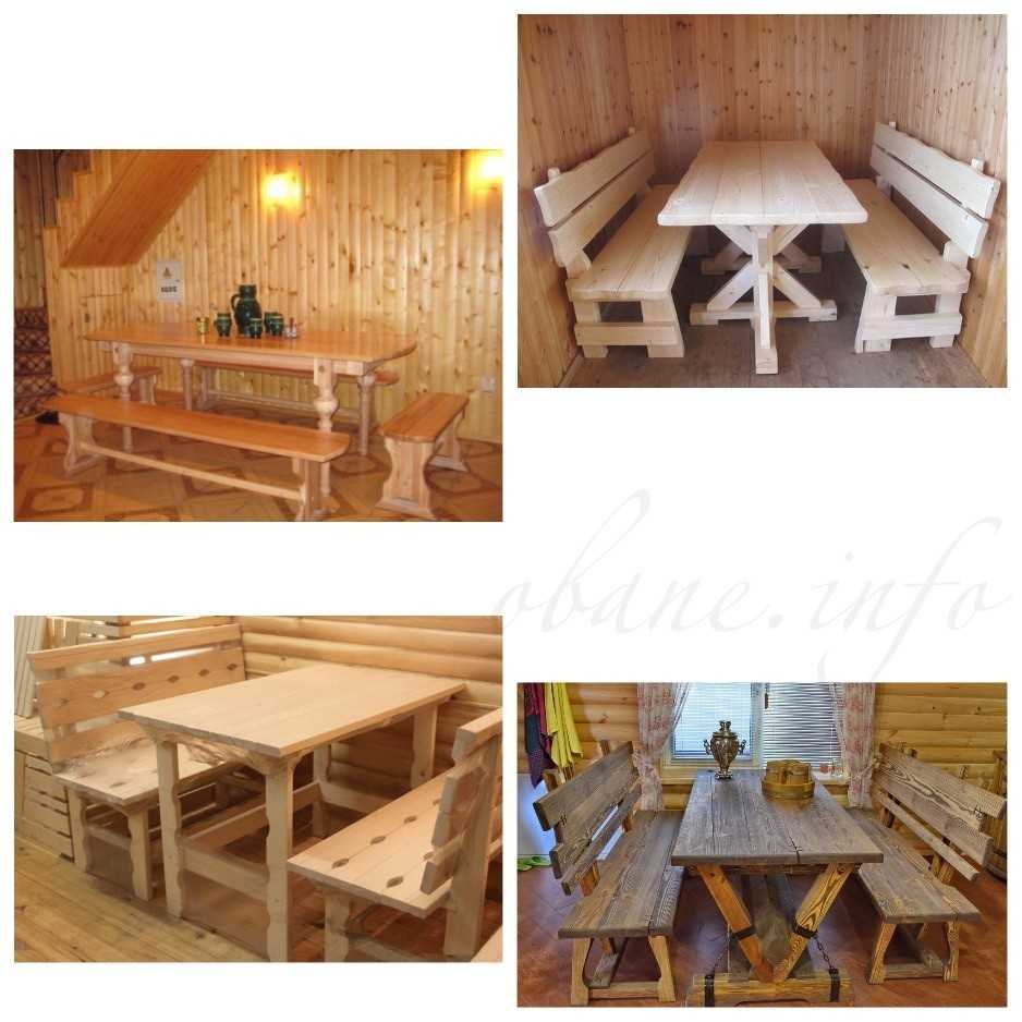 Стол из дерева для бани изготавливается из определенных пород деловой древесины, обладающими необходимыми потребительскими качествами. К таким следует отнести следующие: