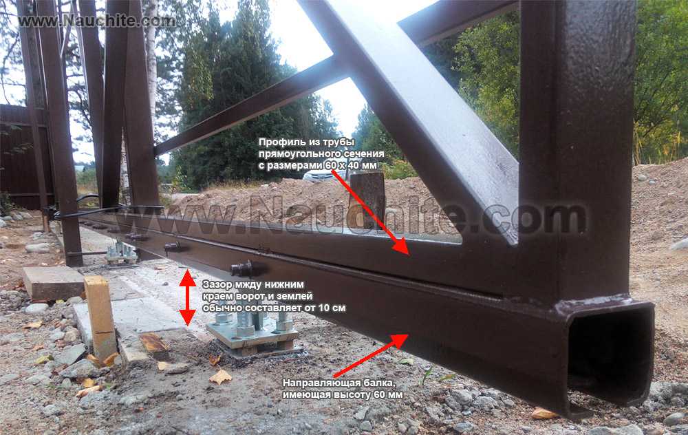 Дальше при установке ворот своими руками можно приступать к сборке необходимых консолей откатных ворот. Для этого могут потребоваться профильные трубы. Размеры можно подбирать самостоятельно в соответствии с масштабом конструкции.