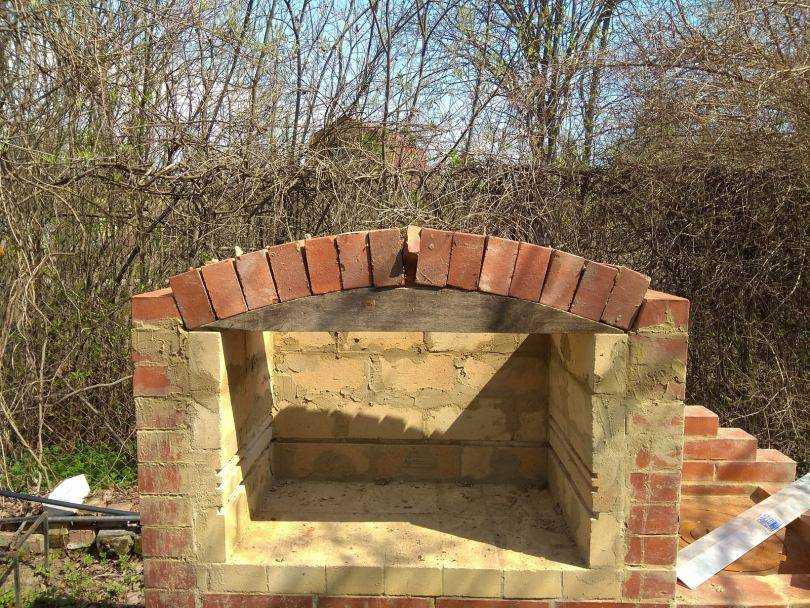 В зависимости от выбранного топливника производятся следующие действия: при арочном варианте используется кружало. Между кирпичами с помощью щепок оставляется зазор шириной 1 сантиметр. Далее пустое пространство заполняется раствором, и вся конструкция засыхает 2 дня.