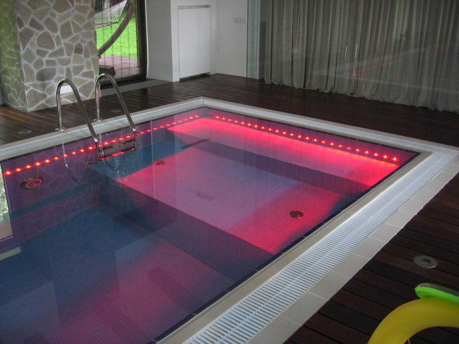 Это позволяет сделать подсветку бассейна. Высокий показатель герметичности устройств объясняется наличием силиконовой уплотнительной пленки. Степень интенсивности светового потока зависит от размера светодиодов. С помощью пульта дистанционного управления можно изменять степень освещения.