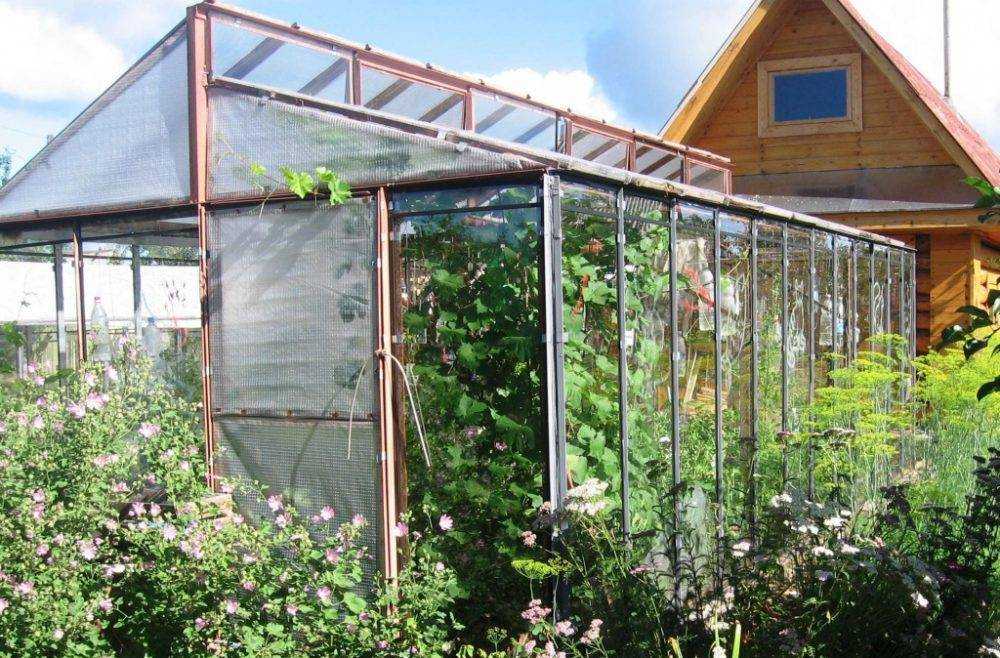 - Возможность построить теплицу практически бесплатно при использовании старых окон или стеклянных дверей.