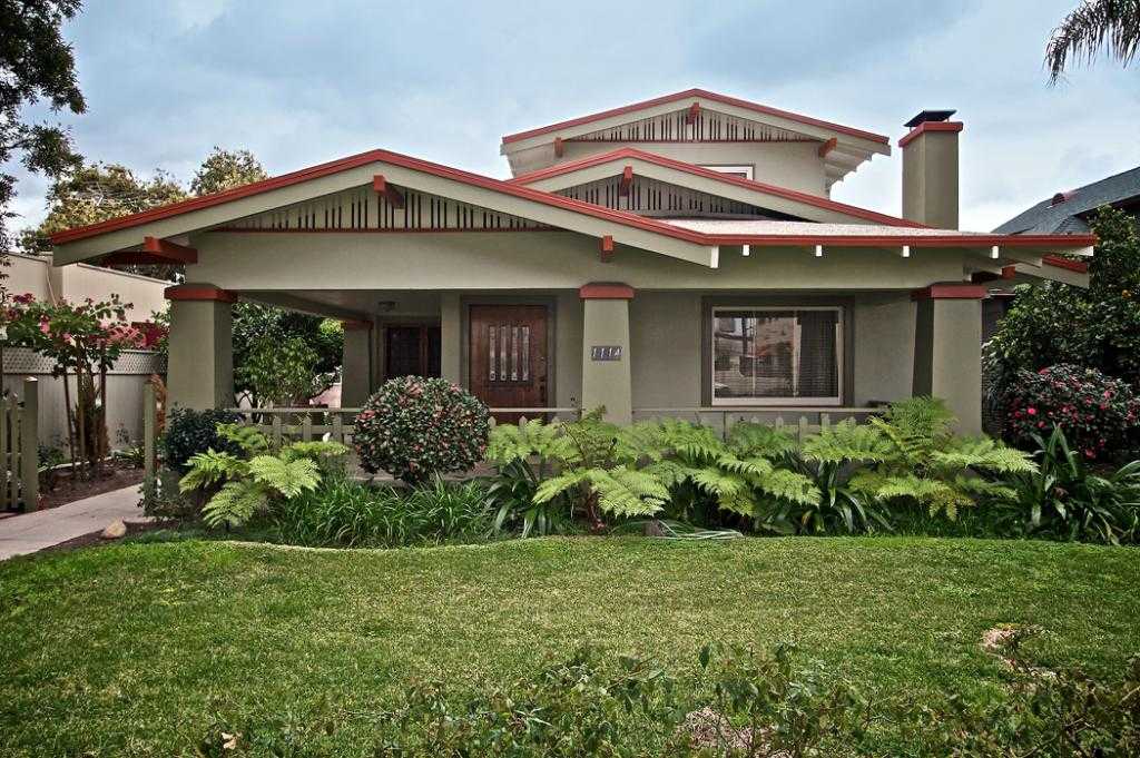 Калифорнийские бунгало – это здания с квадратными колоннами и покатыми крышами. Для них характерны оштукатуренные стены, а также открытые стропила. Зачастую пространство на крышах используют рационально, достраивая невысокий этаж с большим количеством окон. Веранды располагаются у главного входа, они очень просторные. В интерьере преобладают испанские мотивы. Большое количество элементов декора создают из дерева и других природных материалов. Все эти особенности характерны для стиля крафтсмен. Именно строения этого типа считаются традиционными для Америки.