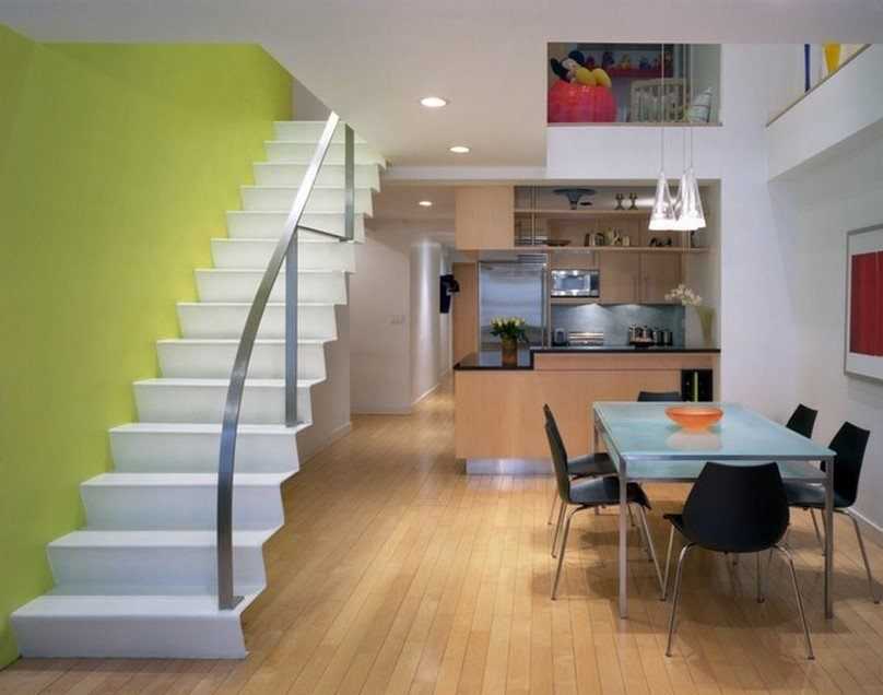 Это же правило касается ситуаций, когда под лестницей находится обеденный стол, а конструкция состоит из отдельных ступеней. Конечно, место освобождается, однако, использовать пространство под открытыми ступенями под место для приема пищи нельзя. То же можно сказать о форме. В погоне за креативом нельзя забывать о практичности и безопасности.