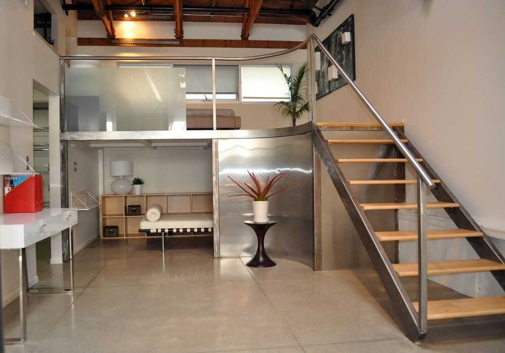 Со стилистикой лофта гармонично взаимодействуют бетонные лестницы, которые ещё более подчеркнут промышленный характер. Другие основы в данном стиле тоже будут уместны.