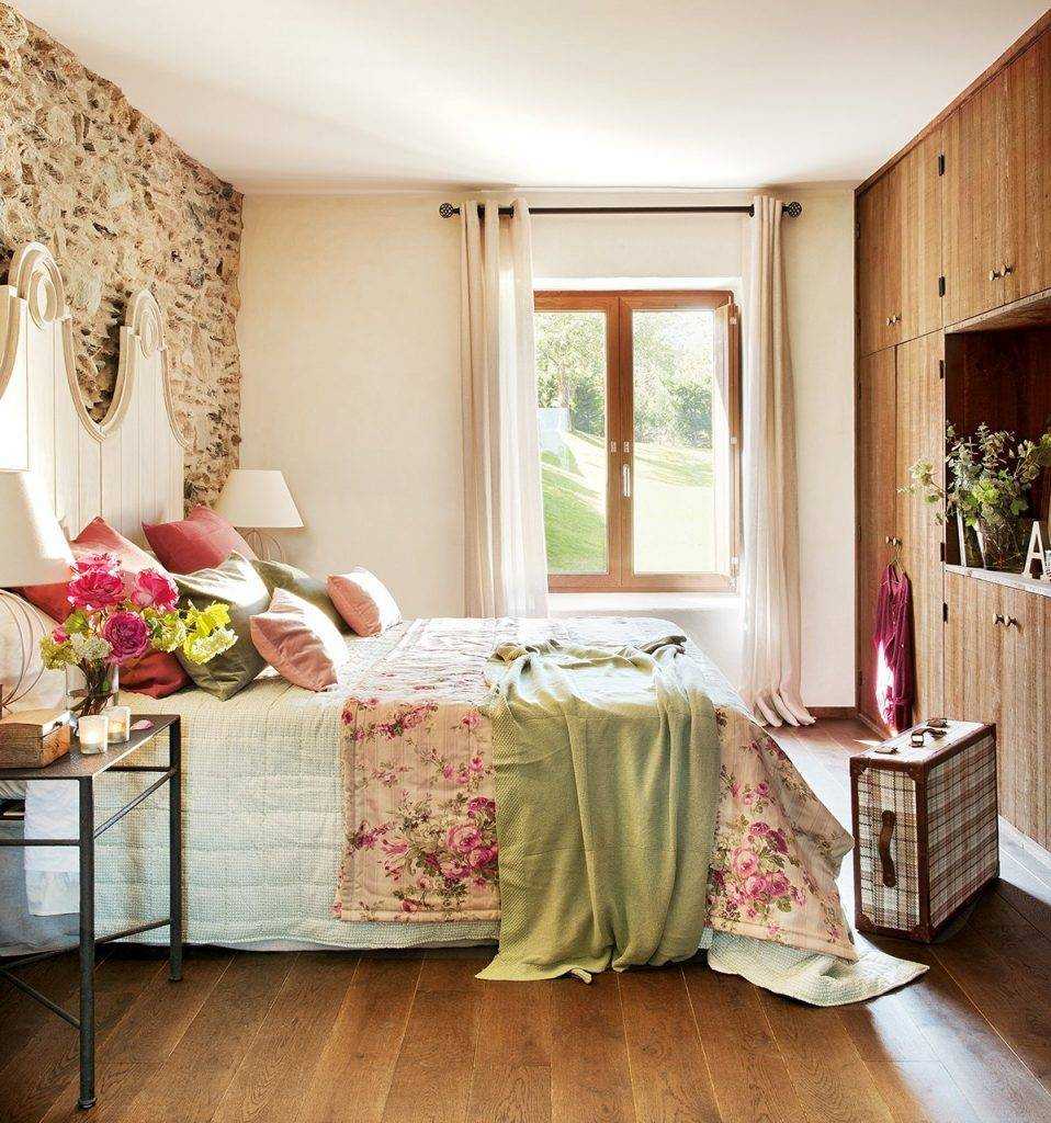 - Стиль кантри, тоже очень часто применяют при оформлении дизайна спальной комнаты. При создании интерьера в этом стиле, как правило, стремятся применять натуральные, природные материалы. Этому стилю присуще применение большого количества самых разных элементов. В этом стиле стремятся к естественности. Его ещё называют деревенским стилем;