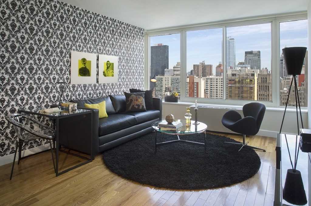 - Гостиная. Легким движением руки гостиная в однокомнатной квартире должна превратиться в спальню, рабочий кабинет или даже столовую. Чтобы выделить место для работы или приема пищи, достаточно просто установить стол и поставить возле него дополнительные источники света. Со спальным местом все немного сложнее. Кровать обязательно нужно закрыть от посторонних глаз или хотя бы поставить как можно дальше от входа в комнату.