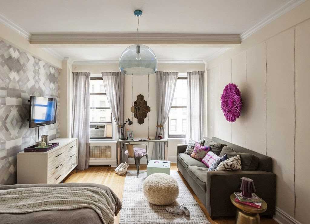 Современная, скандинавская и минималистская мебель-не единственный выбор для дизайна однокомнатной квартиры. Стили, такие как эклектика, традиционный, прибрежный и деревенский, также легко создать, если вы все сделаете правильно. Убедитесь, что весь декор в квартире имеет общий элемент, который все связывает; будь то металлические акценты, цвет, стиль или просто общая визуальная привлекательность и отделка.