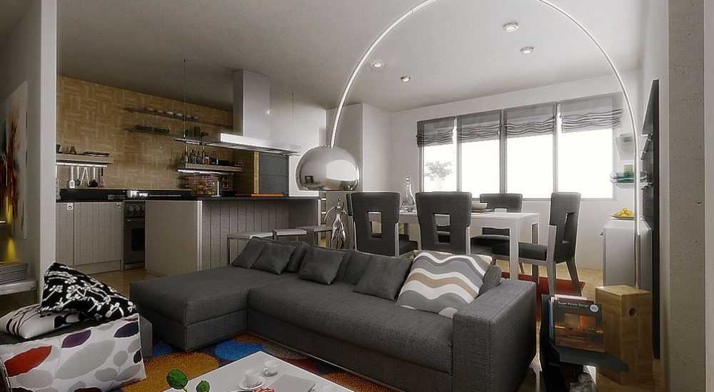 Отличным решением дизайна жилья будет целостное пространство. Плюсом есть то, что в такой квартире очень мало дверных проёмов – это подразумевает то, что особые акценты нужно поставить на цветовой гамме и грамотно продумать мебельную планировку.