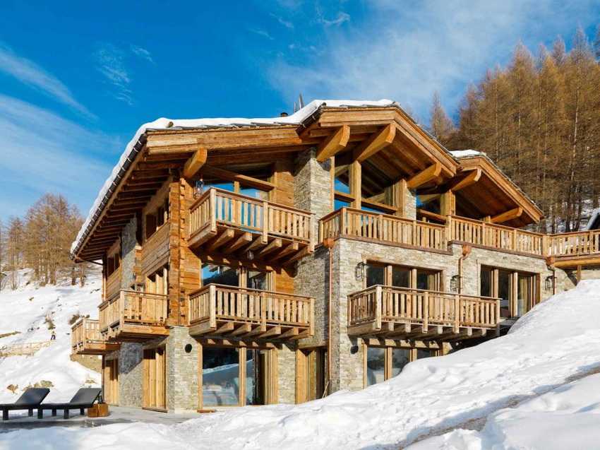 Такой дом мог свободно противостоять порывистому ветру, вьюге и ливням. В современных альпийских домах на смену камню пришли кирпич и бетон с ячейками. Мансардный этаж строят из профилированного либо клееного бруса с использованием каркасной технологии. Также можно встретить сооружения, возведенные из оцилиндрованного или нестроганого бруса.