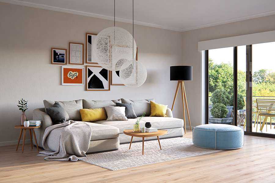 В оформлении гостиной скандинавский стиль очень близок к минимализму.