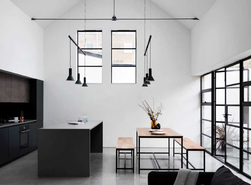 Дом лофт обязательно должен быть просторным, наполненным достаточным свободным местом для удобной эксплуатации. С этой целью в помещениях устанавливают минимальное количество мебели, и только те предметы, которые действительно нужны в комнате, в соответствии с ее назначением.