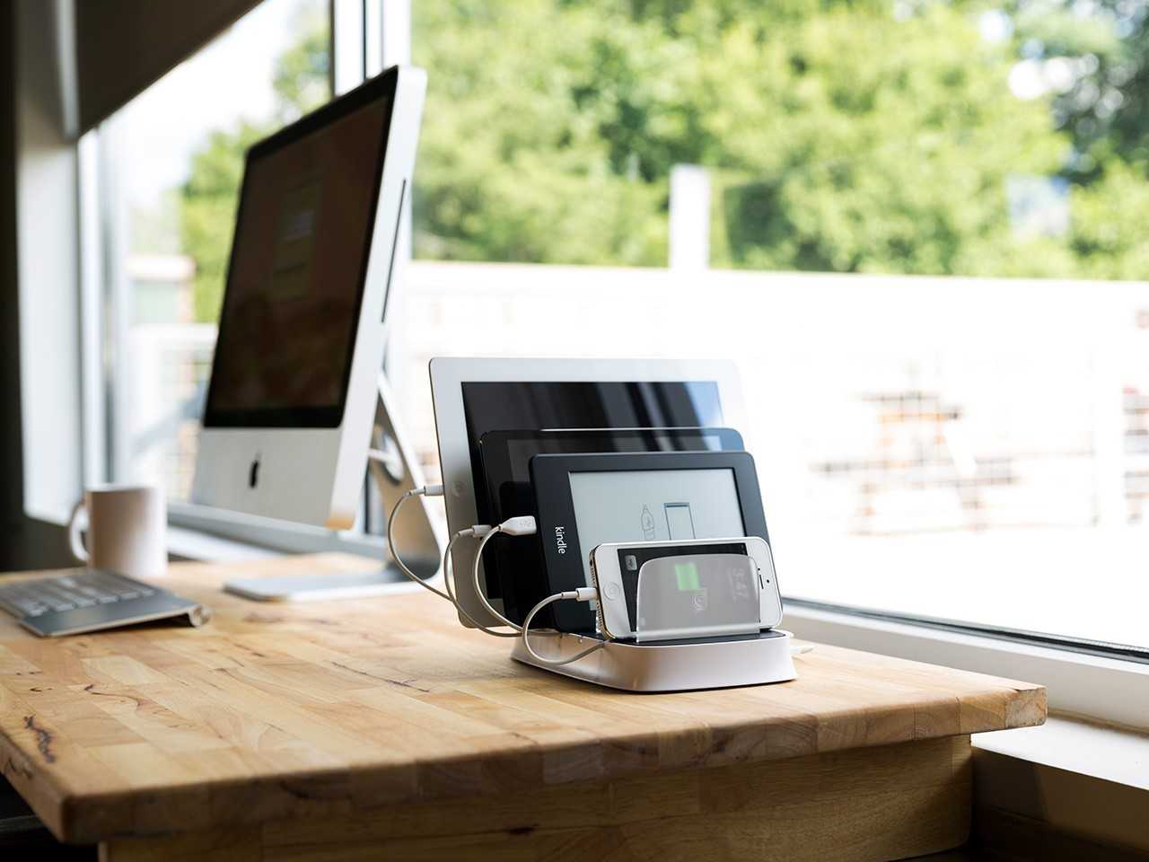 Можете использовать специальную подставку для мобильных устройств. Благодаря ей вы забудете, что такое длинные запутанные провода гаджетов.