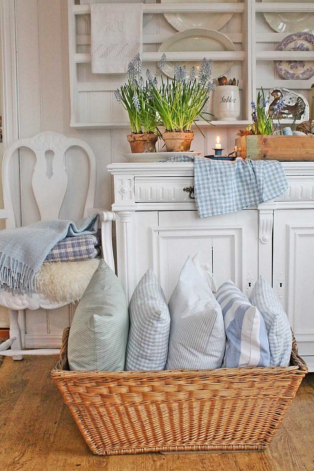 У каждой вещи должно быть свое место. Пледы и одеяла — объемные предметы. Если они занимают слишком много пространства в вашей маленькой комнате, купите мебель со встроенными ящиками для белья или приспособьте для хранения подушки корзинку. Примерно такую, как вы видите на фото. Но лучше всего отказаться от большого количества диванных подушек. В маленькой комнате они создадут ощущение беспорядка.