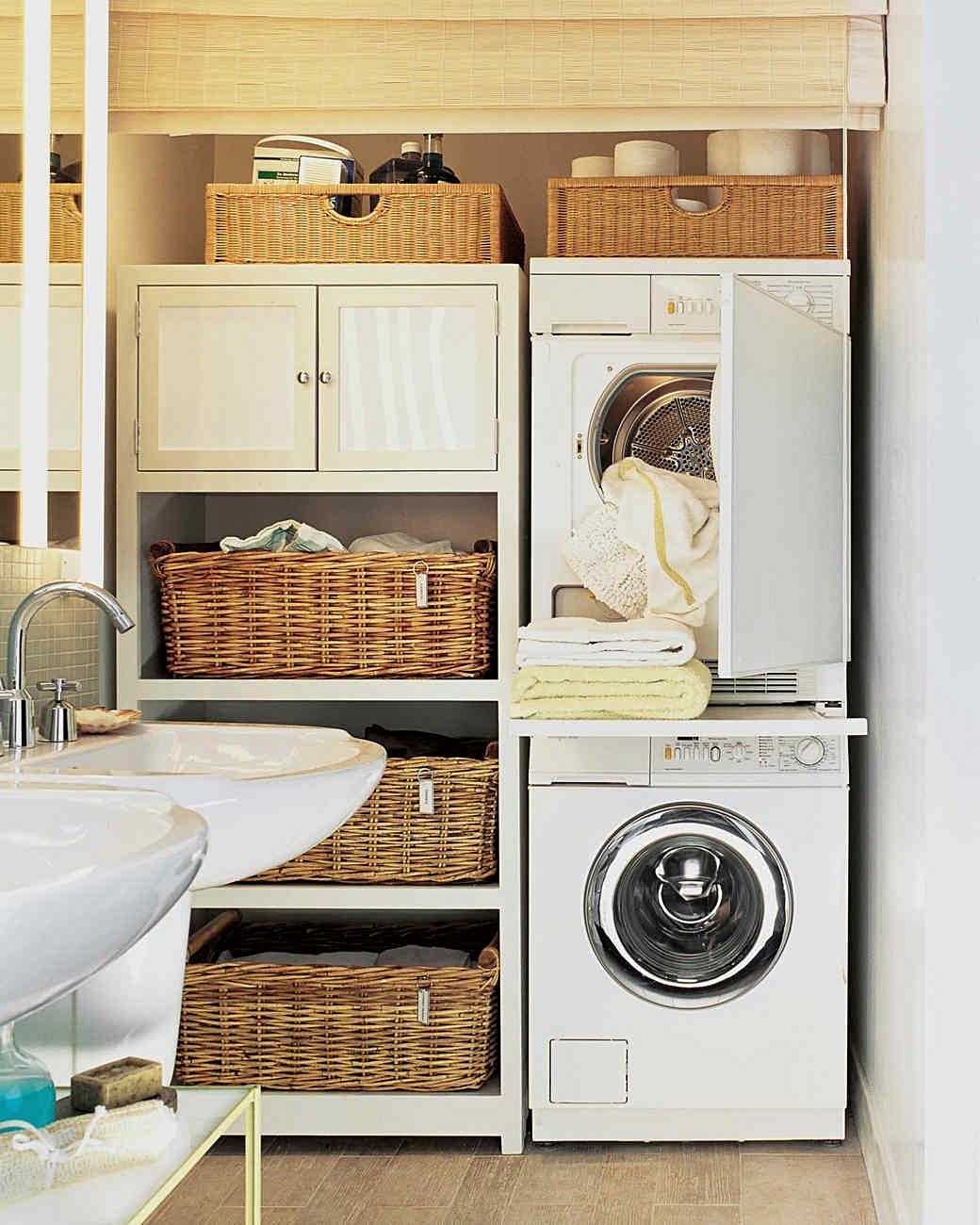Белье и полотенца, чистые они или грязные, лучше хранить в специальных корзинах. Они могут стоять в углу, но для маленькой ванной лучше выбрать выдвижные. Так вы сможете сэкономить пространство и поддерживать порядок.