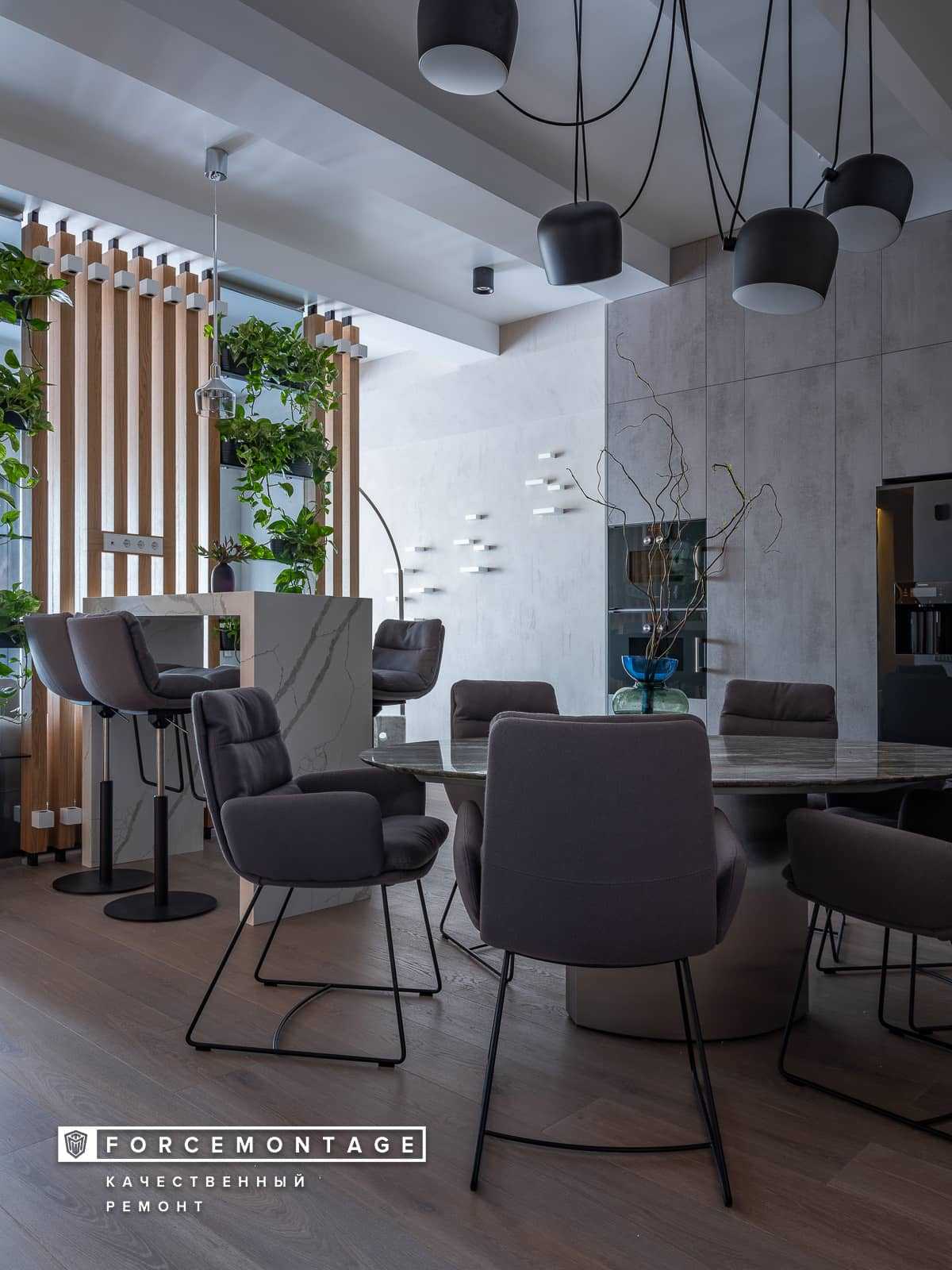 Современный интерьер квартиры со стеклянными межкомнатными перегородками