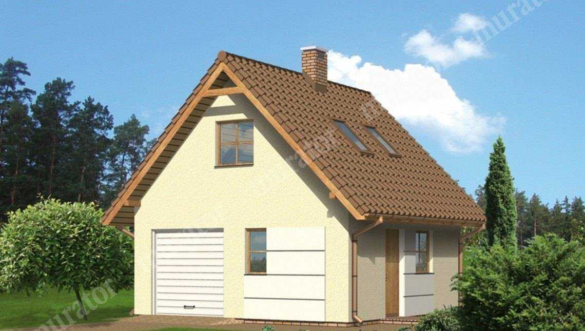 Замечательный пример маленького коттеджа с мансардой и гаражом представлен на фотографии ниже. Эта уютная постройка очень практична – несмотря на свои размеры. На первом этаже помимо автомобиля поместятся прихожая, дополнительная комната, небольшой санузел и лестница на второй этаж. Этот типовой проект очень хорошо подходит для небольшого дачного участка.