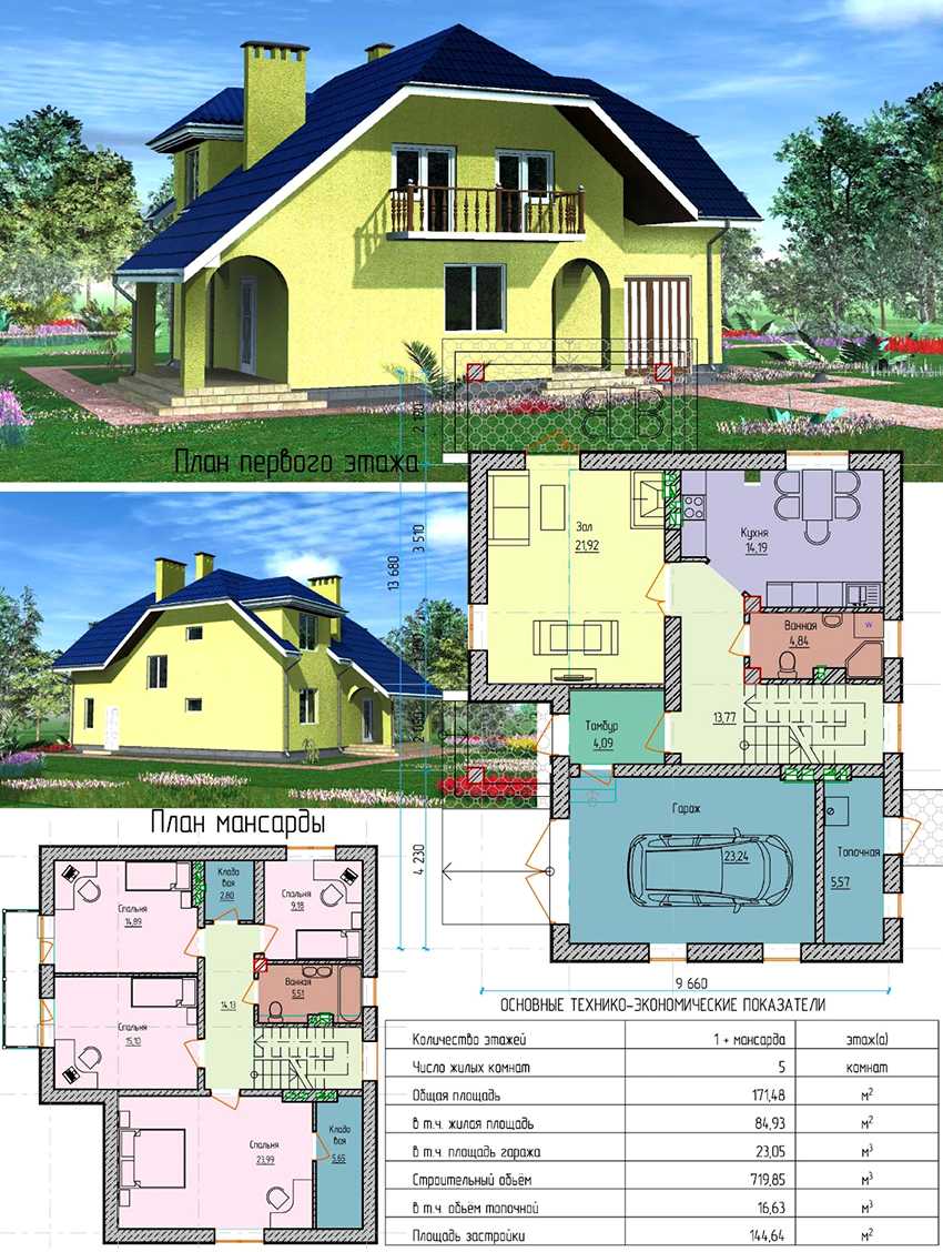 Проекты одноэтажного дома с мансардой: чертежи и фото