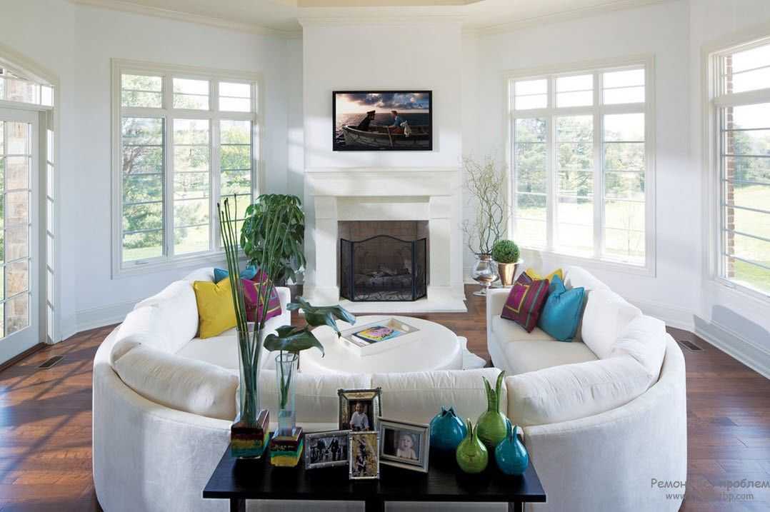 В виде декора для гостиной одинаково хорошо подходят свежесрезанные цветы и горшечные представители флоры, конечно, можно использовать их тандем.