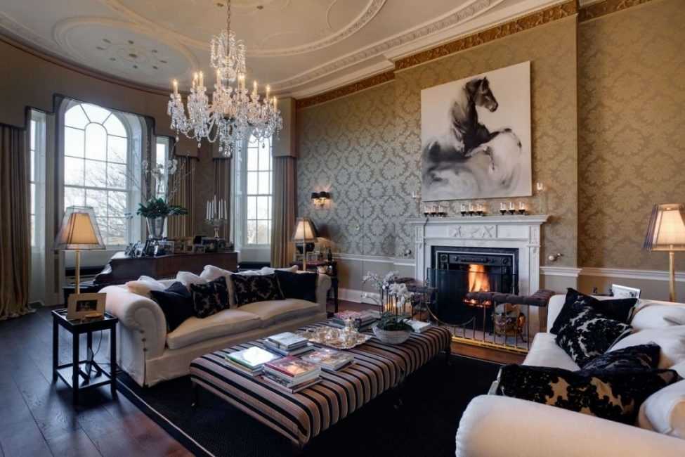 Строгость и элегантность – вот две составляющие английского стиля в дизайне интерьера. Но, вместе с тем, данный стиль подразумевает большое количество предметов мебели и декоративных элементов. Высокие потолки и отменное освещение – неотъемлемые атрибуты английской гостиной.