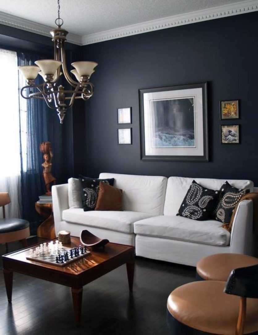Скандинавский стиль. Спокойный и где-то немного холодный стиль норвежских ледяных полей и туманных фьордов поможет сделать стильной любую гостиную, независимо от ее размеров. Белоснежные тона, разбавленные ультрамариновыми красками, настроят на деловой лад, а пушистые пледы, покрывала, уютный ковер внесут необходимую теплоту при общении с близкими людьми. Дополнительное тепло (в прямом и переносном смысле) подарит камин.