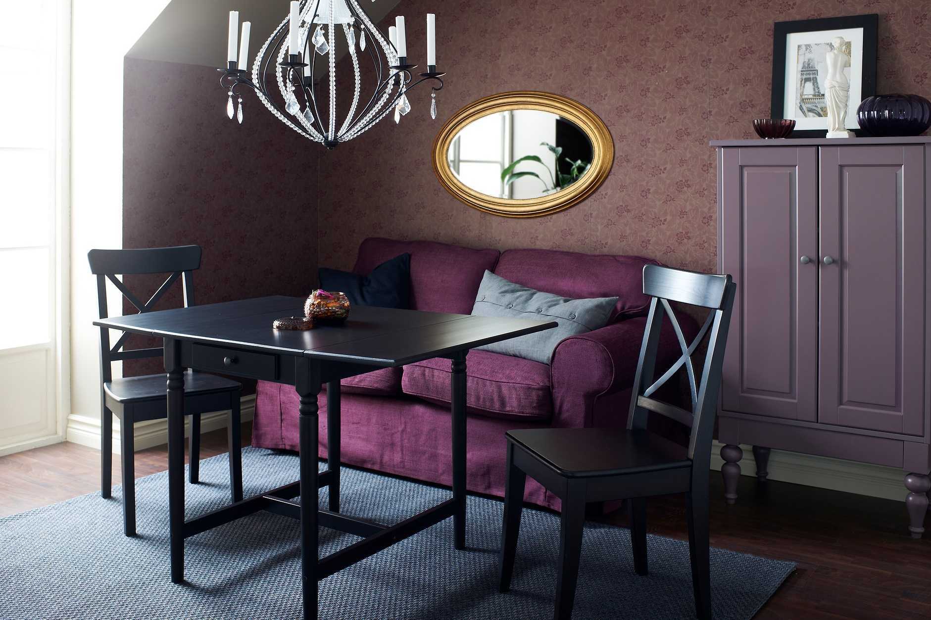 - Обеденные столики. Небольшой столик для завтрака ИКЕА позволит сэкономить свободное пространство в интерьере.
