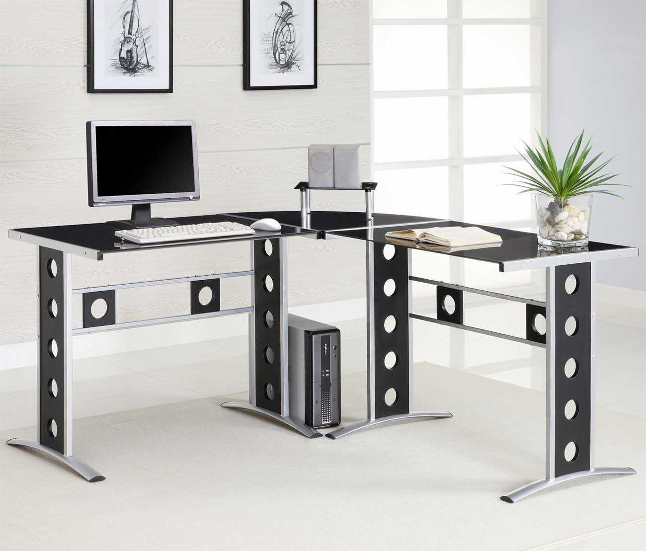 Металлический компьютерный стол. Каркас этих столов выполнен из нержавейки или алюминия, столешницы чаще всего из стекла. Так же в их изготовлении может быть использован и пластик.