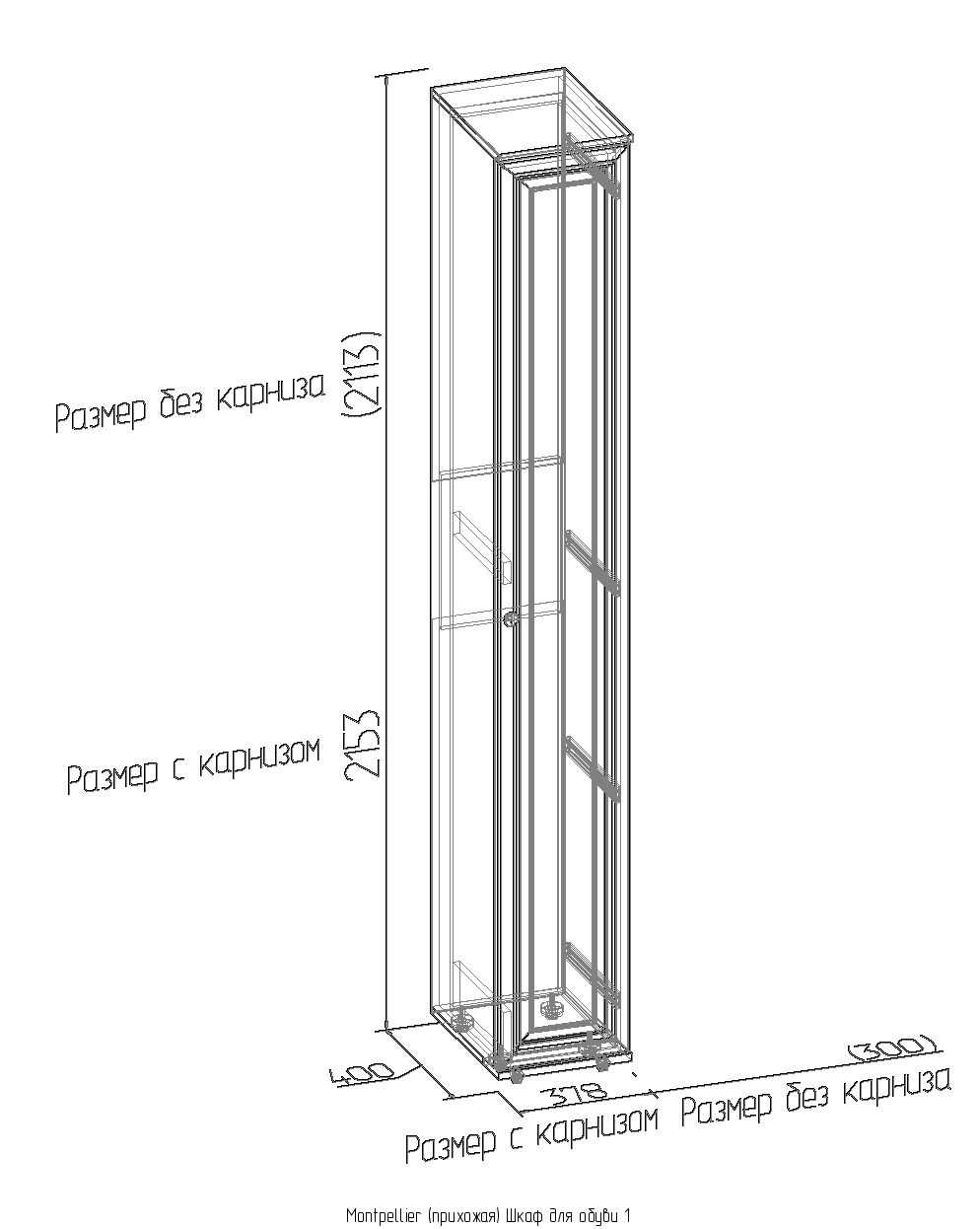 Закрытый мебельный шкаф можно разделить на 3 основные части: