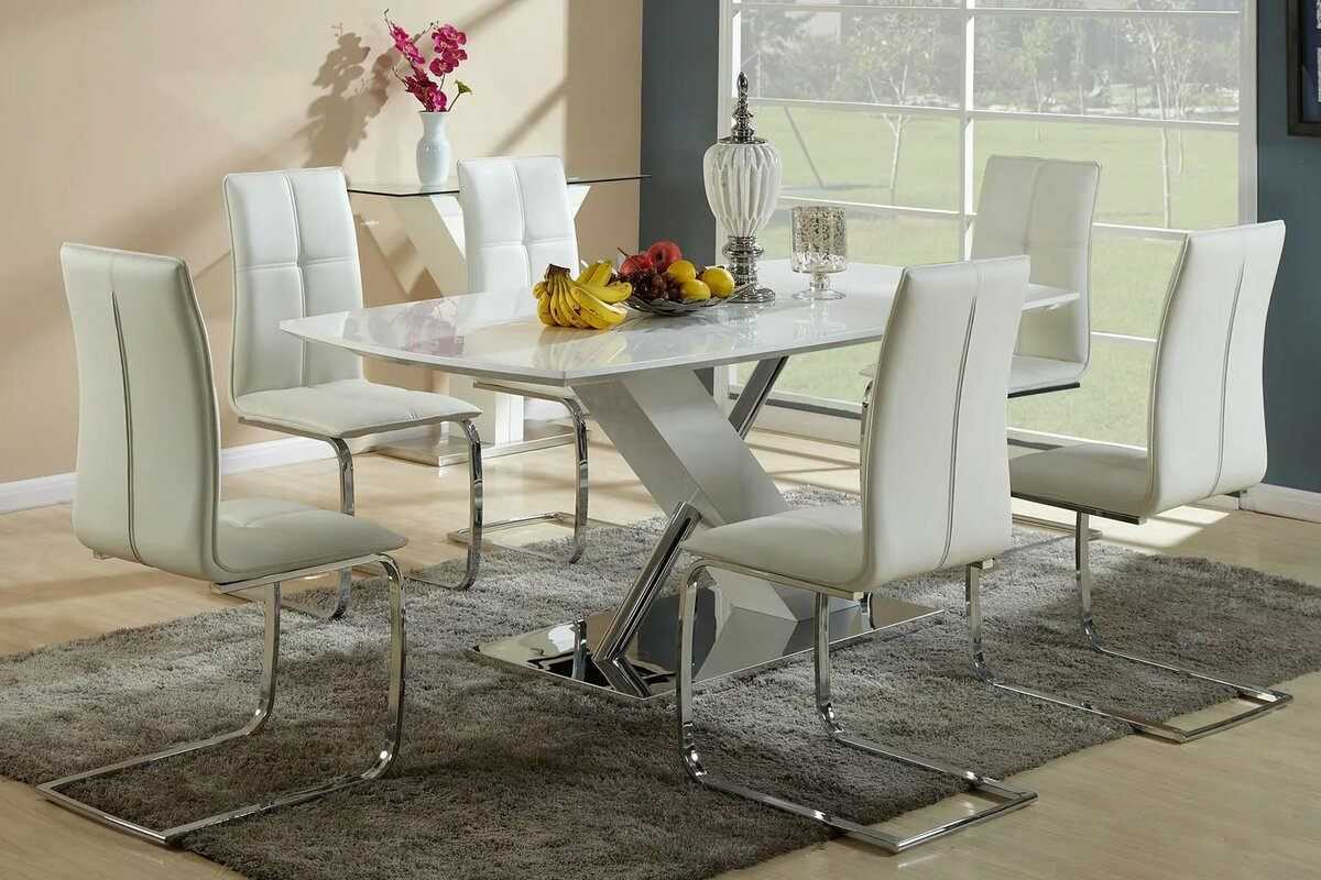 Сочетание металла со стеклом или деревом в современном обеденном столе — отличное решение для инновационных интерьеров. Это может быть круглый, прямоугольный, квадратный или неправильной формы стол. В маленькой комнате можно поставить небольшую, низкую стеклянную или деревянную скамейку. Складные обеденные столы также являются хорошим вариантом.