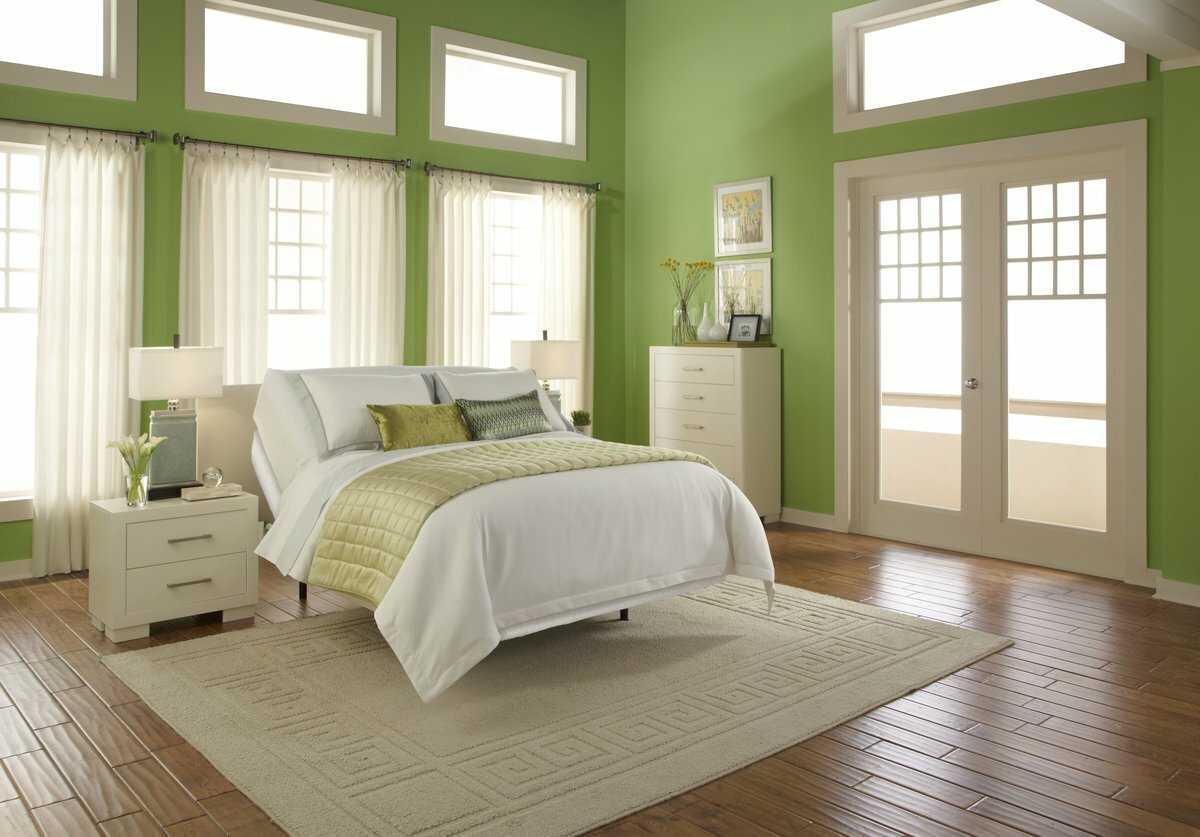 В спальне вы можете позволить себе темные цвета, даже черный по принципу, что используете более глубокие и насыщенные расцветки в комнатах, где проводите время, в основном вечером и ночью. Темные цвета спальни являются четким сигналом того, что это особое место тишины и ночного отдыха. Белый, пастельный диапазон, нейтральные оттенки, расслабляющие зеленые и голубые, серо-голубой, бирюзовый, пурпурный, красный также рекомендуются для спальни.