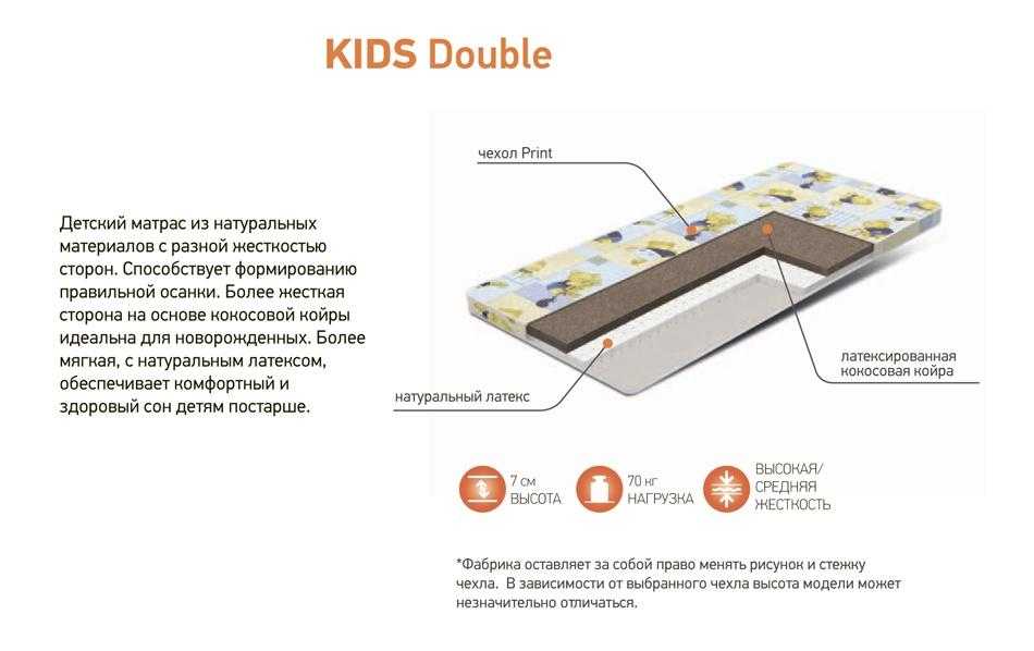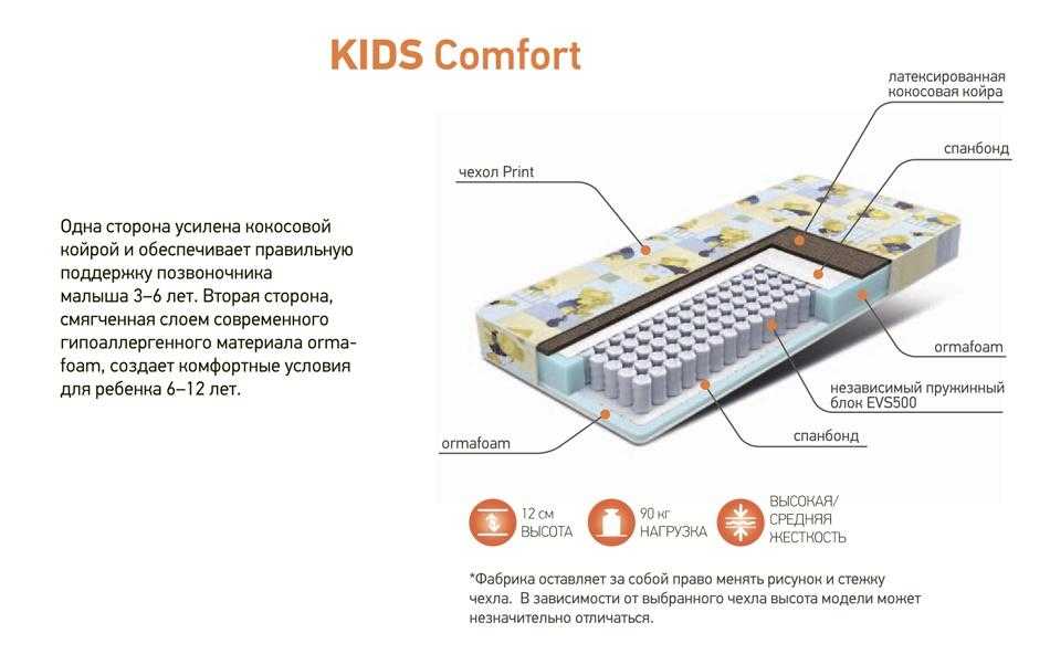 - Степень жесткости. На жестких поверхностях специалисты рекомендуют спать детям возрастом до года, после чего следует перейти на вариант со средним показателем жесткости. Соблюдать правило обязательно всем, кто стремится воспитать здоровых малышей. Новорожденным подбираются модели, не оснащенные пружинными блоками, а состоящие из кокосовой койры и латекса. Примером служат модели Kids classic Big, Kids classic. Для детей от 3 до 6 лет подойдут пружинные модели типа Kids smart, Kids Comfort.