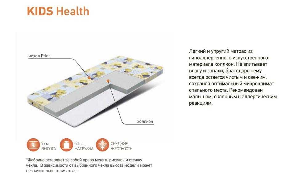 - Гипоаллергенность. Производитель матрасов для детей Орматек использует для изготовления изделий исключительно материалы, не способные вызвать аллергические реакции. Особым спросом пользуются модели Kids Health и Kids Soft.