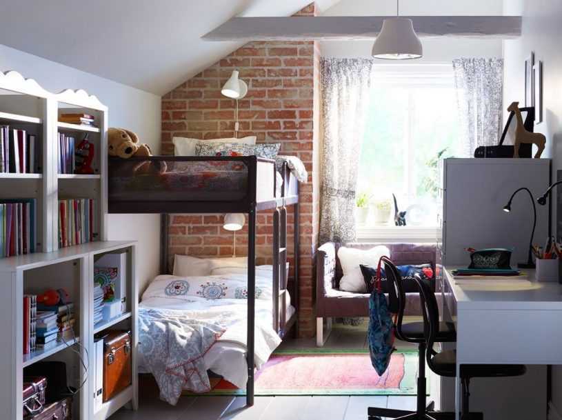 Для девочек и мальчишек приходится обустраивать индивидуальные зоны, если комната одна. На помощь придут неординарные решения: купить кровать в комплекте с рабочей зоной, поставить кресло-кровать или выбрать удобную двухъярусную модель спального гарнитура.