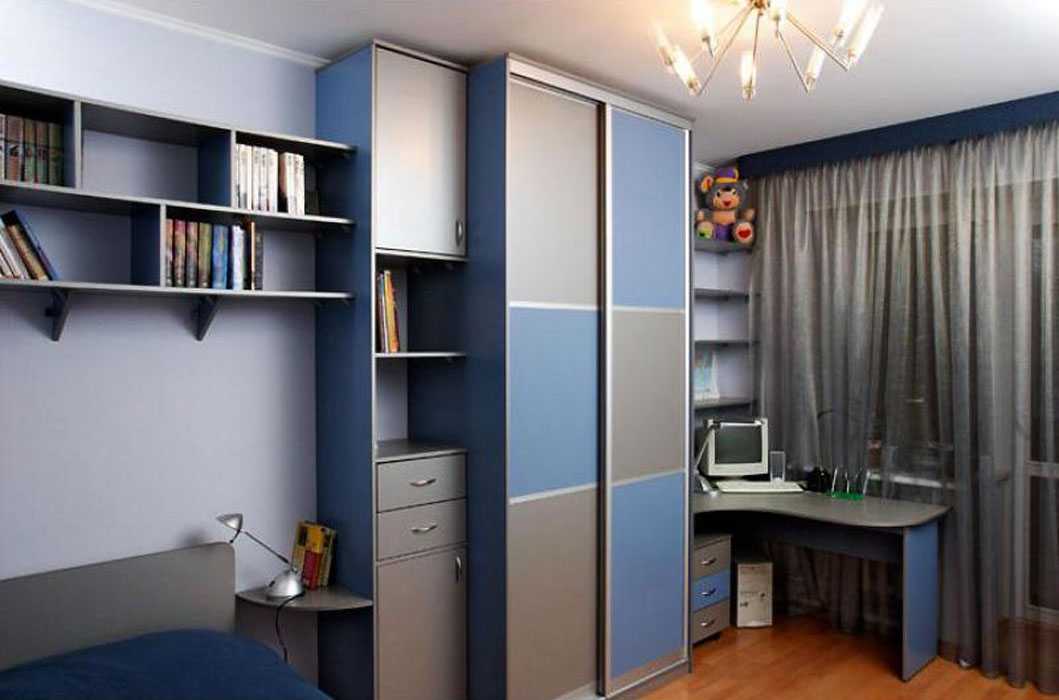 Комнаты со встроенными шкафами пользуются спросом. Если в наполнении представленных вариантов в магазине не оказалось подходящего, возможно выполнить его под заказ. Шкаф с полками необходимо подгонять под рост ребенка, потому что крохе сложно самому пользоваться шкафом, не подходящим ему по размеру.