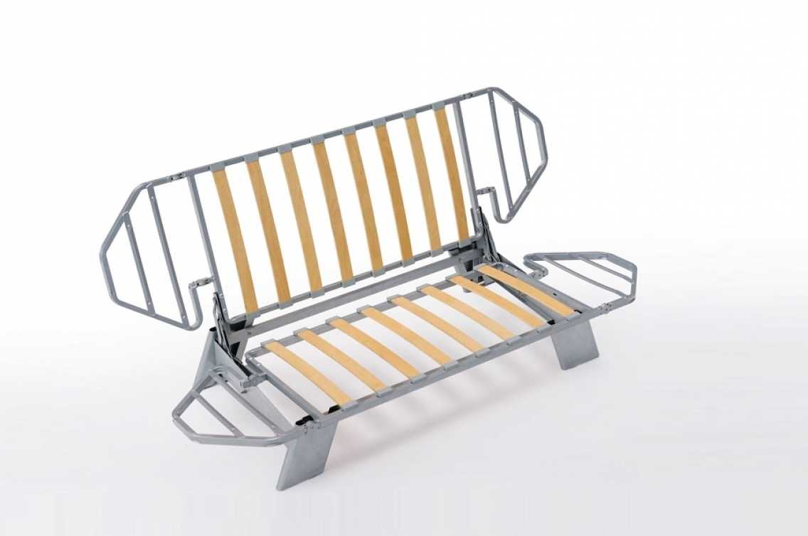 Основания механизмов первоначально изготавливались из металлических трубок, гибких тентов и сетки. Неудивительно, что со временем такие основания провисали и не доставляли комфорта спящим людям. Поэтому, последующие варианты подвергались непрерывной модификации – помимо тента, сюда начали устанавливать латы (деревянные гнутые ламели, составляющие основу ортопедических оснований диванов с металлическим основанием).
